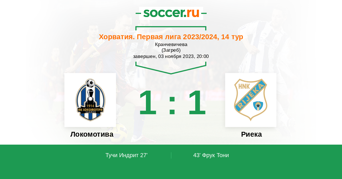 43’ 1:1 Фрук Тони
