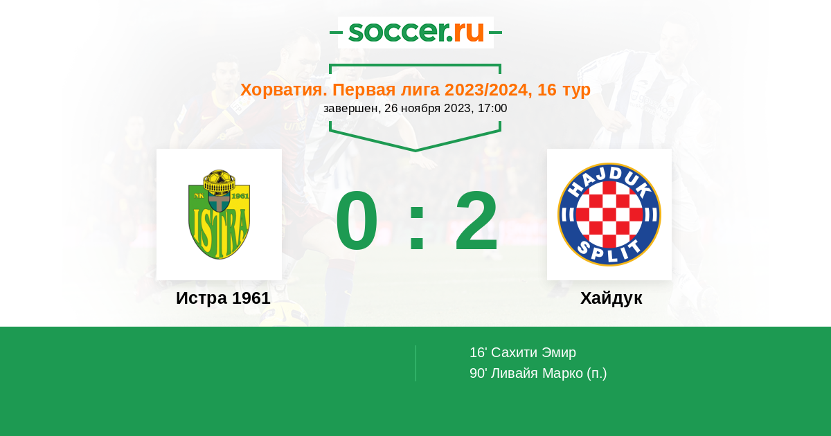 16' (0:1) Сахити Эмир (77) (Диалло Исмаэль (5))