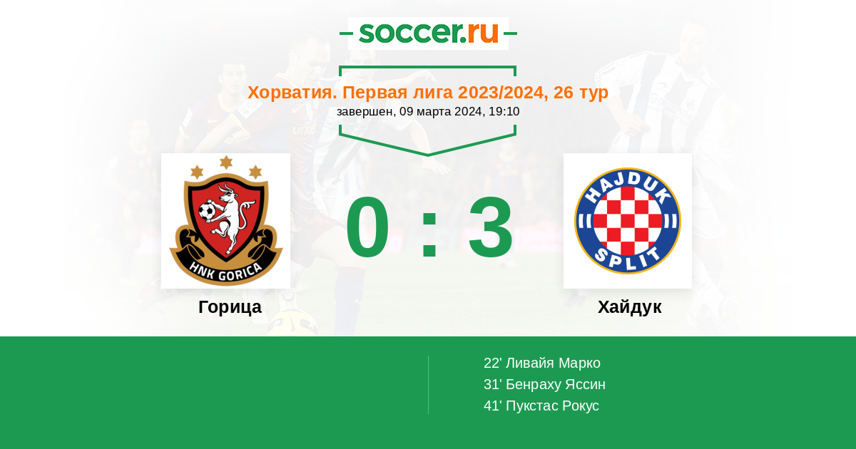 22' (0:1) Ливайя Марко (10) (Бенраху Яссин (11))