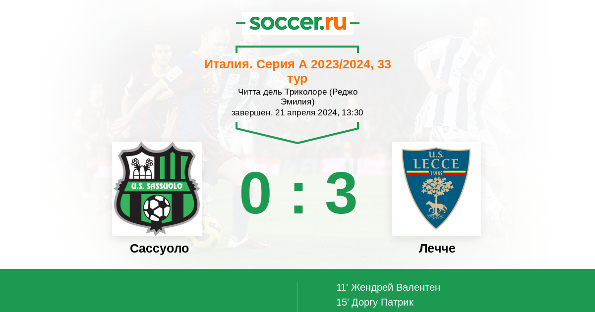 Несмотря на то, что копилке хозяев на шесть очков меньше, чем имеется у гостей, этой матч эти команды можно назвать поединком прямых конкурентов в борьбе за выживание. Про такие говорят - битва на три исхода. И всё-таки то, что в последнее время на весеннем отрезке Сассуоло смотрится постабильнее и интереснее соперника, в совокупности с фактором домашнего поля, который на стороне "чёрно-зелёных", отдам небольшое предпочтение хозяевам и в качестве ставки возьму их нулевую фору. Да и если мы посмотрим на результаты личных встреч, то в пяти крайних таковых мы не увидим ни одной победы Лечче: две ничьи + три виктории Сассуоло. Мой прогноз - фора (0) хозяев.