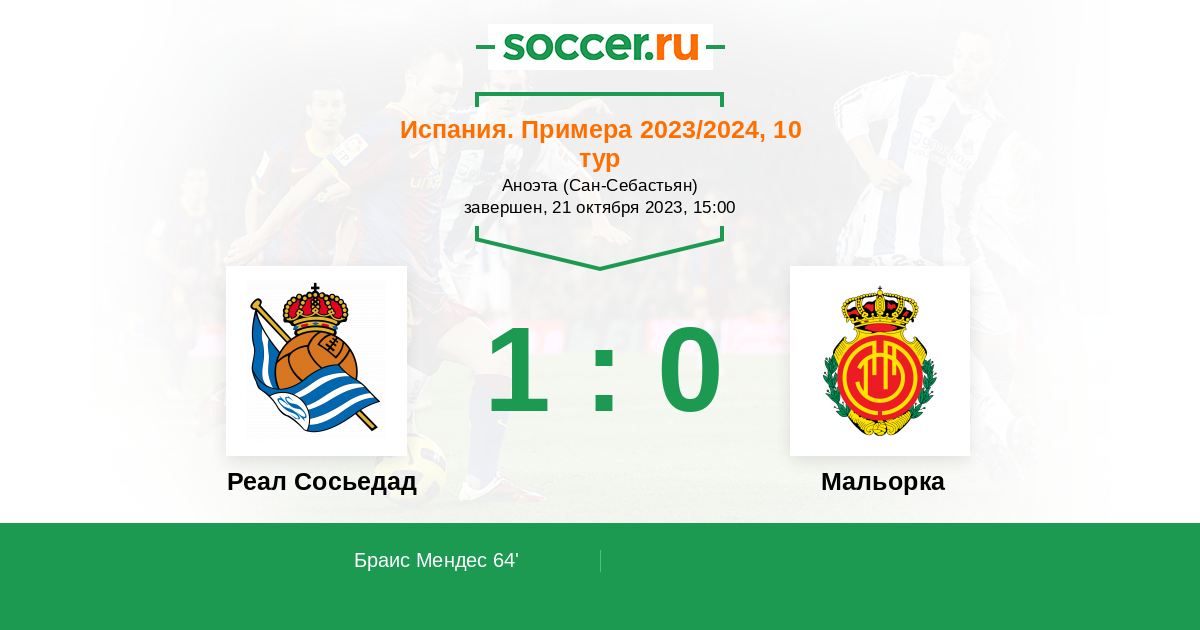 64' (1:0) Браис Мендес (23) (Кубо Такефуса (14))