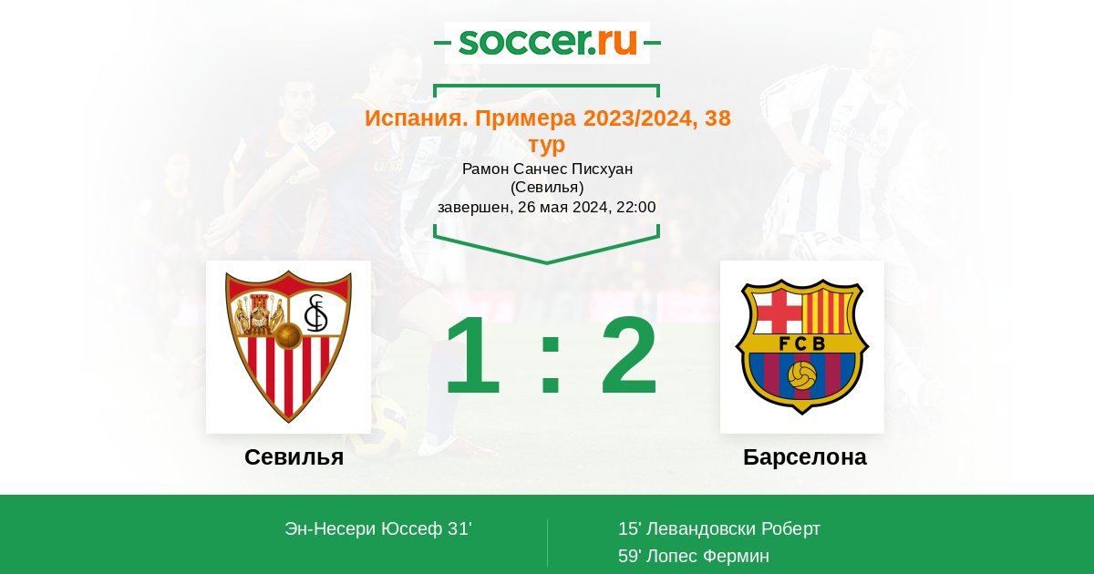 Стадион Рамон Санчес Писхуан (Севилья), зрителей: 34888