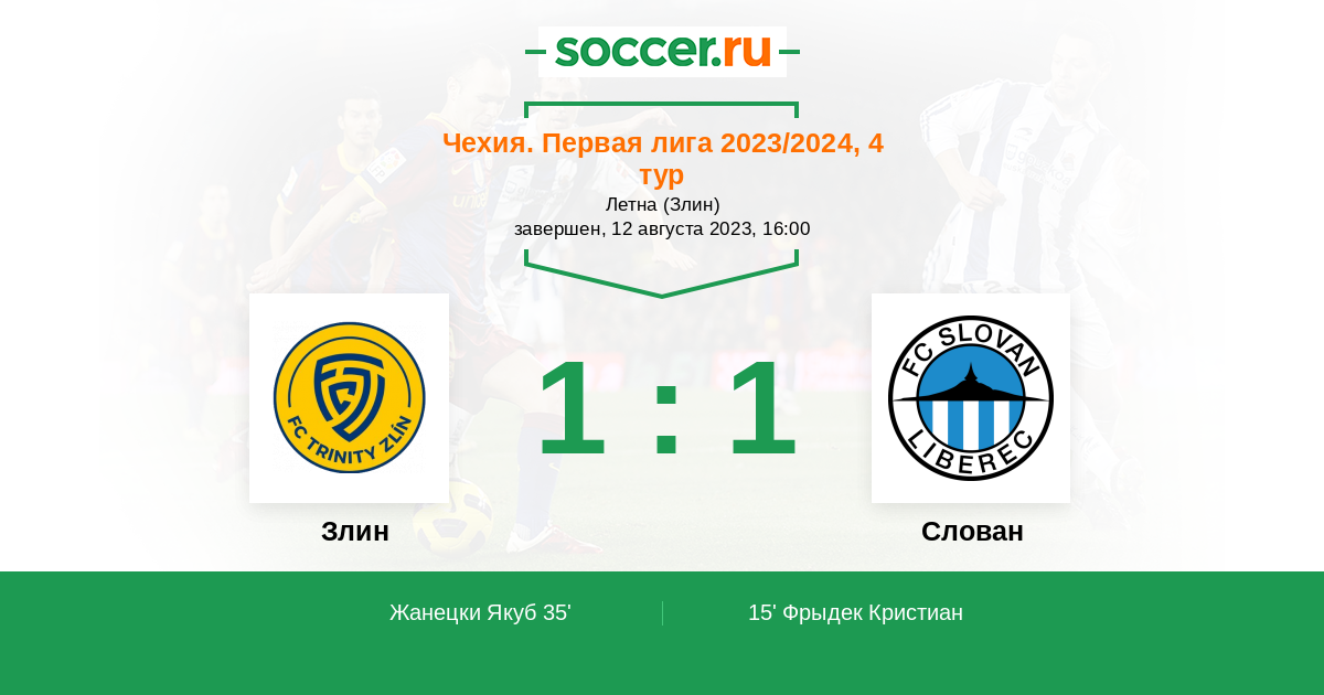 35' (1:1) Жанецки Якуб (68) (Фантис Антонин (15))