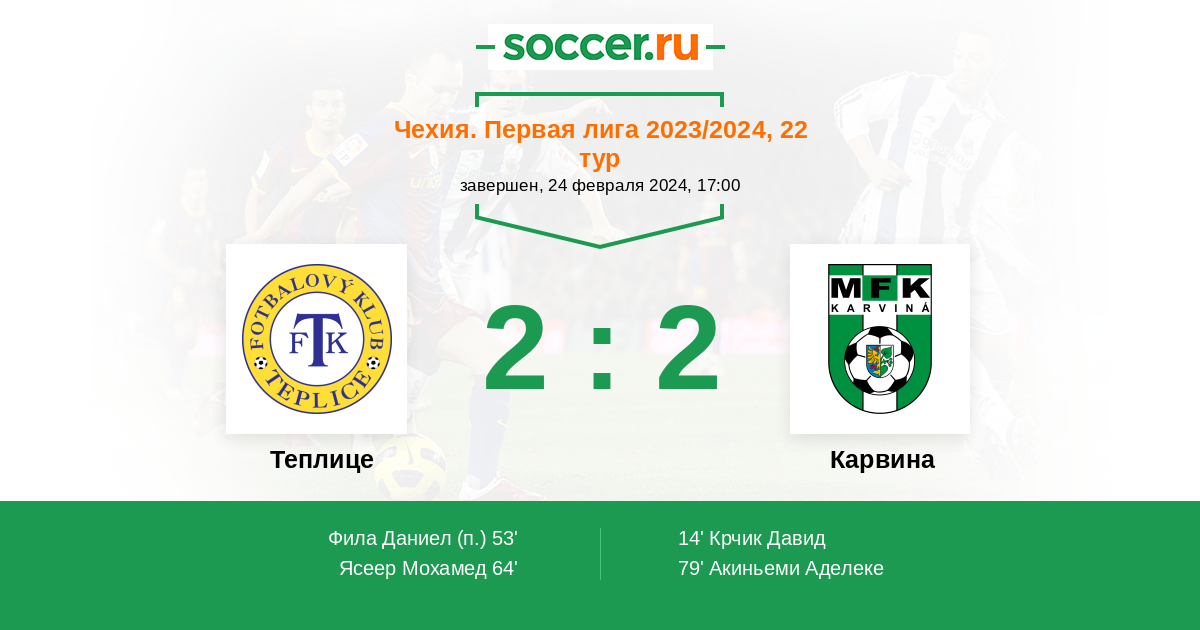 14' (0:1) Крчик Давид (37) (Будински Лукаш (23))