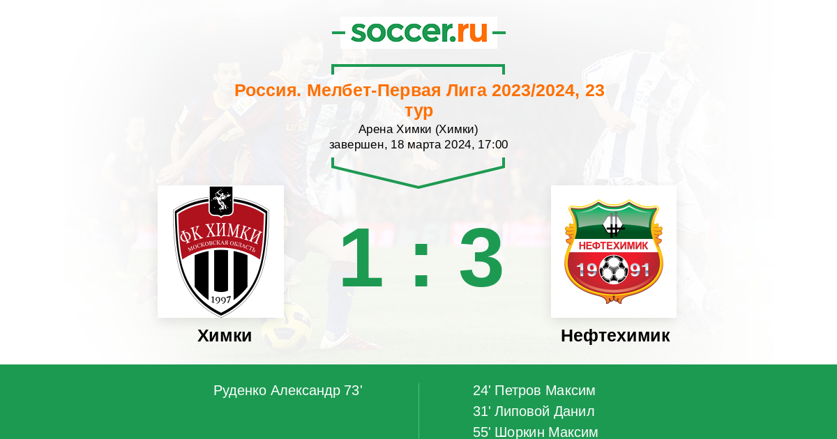 “Химки” имеют отличную форму в чемпионате, команда побеждает в 55% противостояний текущего сезона Первой Лиги, что позволяет ей находиться на лидирующей позиции в чемпионате. “Нефтехимик” же в свою очередь побеждает только в 36% противостояний. У гостей довольно много ничьих, но все равно видно, что немного в классе они хозяевам все-таки уступают.