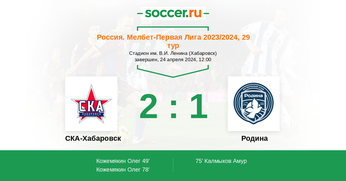 СКА Хабаровск, в домашних играх, хорошо играет и может выиграть эту встречу. Но Родина тоже хорошо может держать игру в трудных выездных матчах. Сложно предположить исход этого матча. Понадеюсь на интуицию. Думаю, что будет ничья.