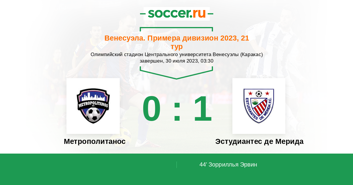 44' (0:1) Зорриллья Эрвин (28) (Гомес Хесус (10))