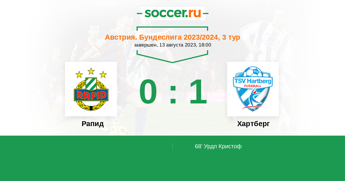68' (0:1) Урдл Кристоф (8) (Провиденс Рубен (70))