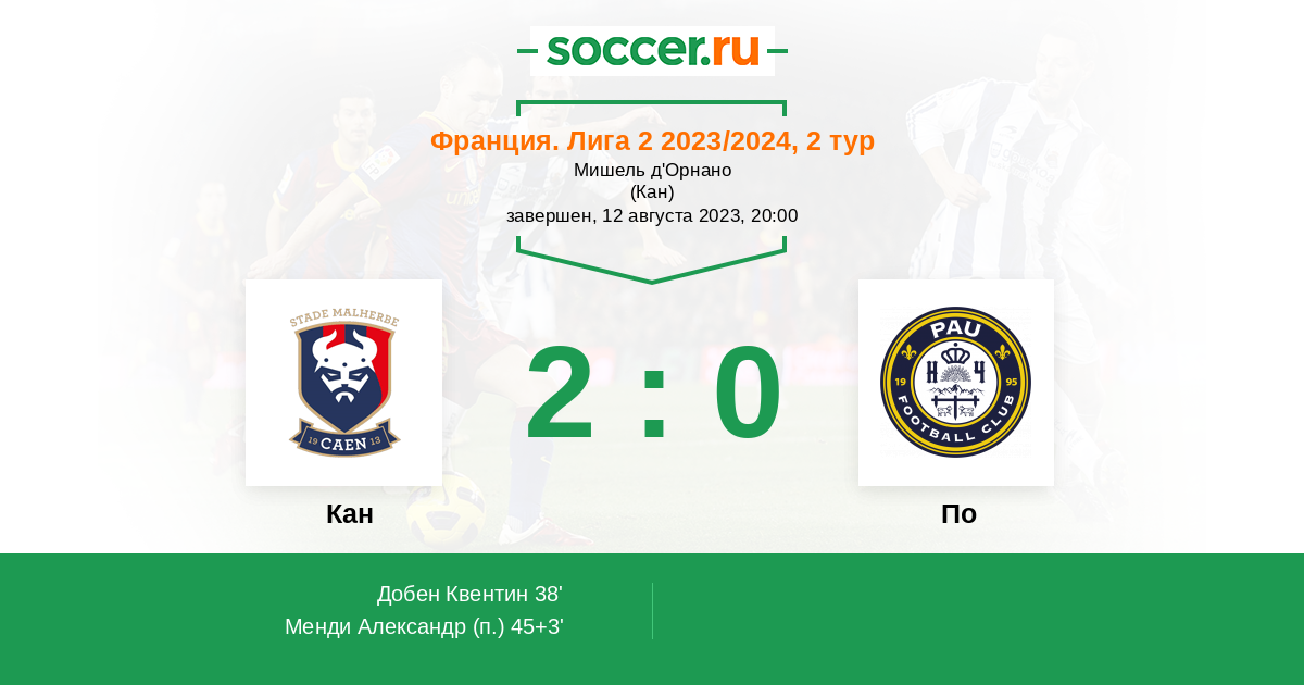 Кан Логотип футбольный клуб Кан 2:0 Логотип футбольный клуб По (Бизано) По