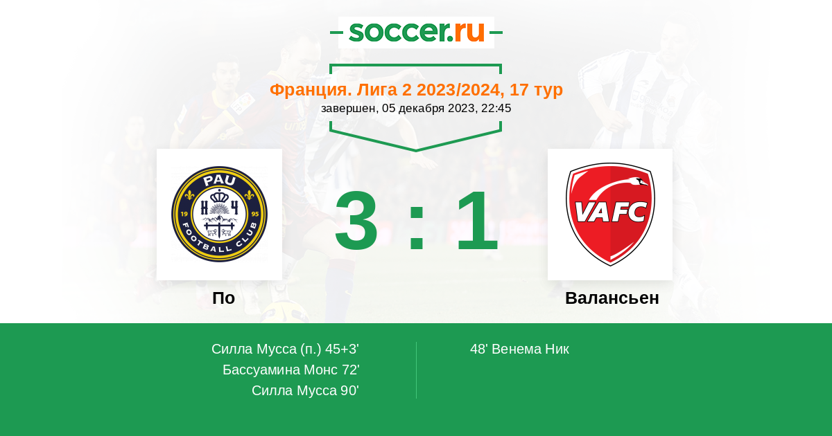 90' (3:1) Силла Мусса (7) (Обьянг Жоанн (23))