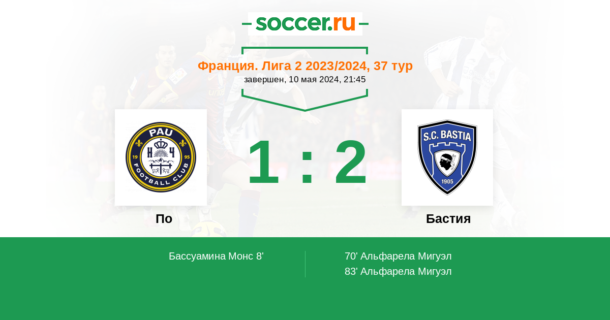 83' (1:2) Альфарела Мигуэл (10) (Бьянчини Флориан (17))