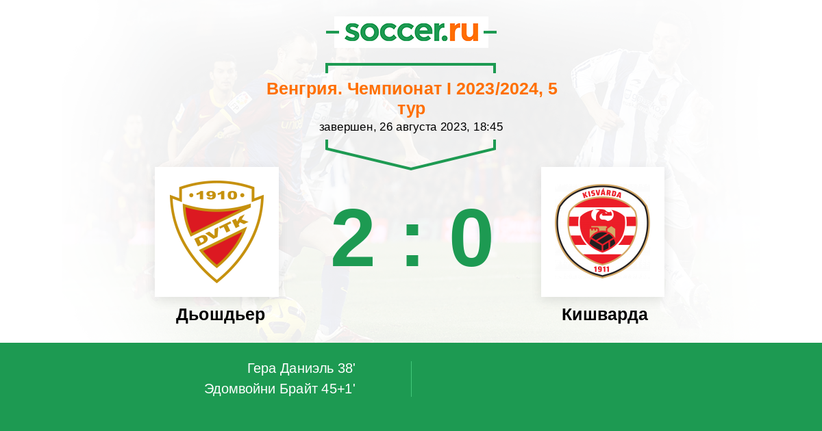 45+1' (2:0) Эдомвойни Брайт (34) (Стефен Годфри (15))