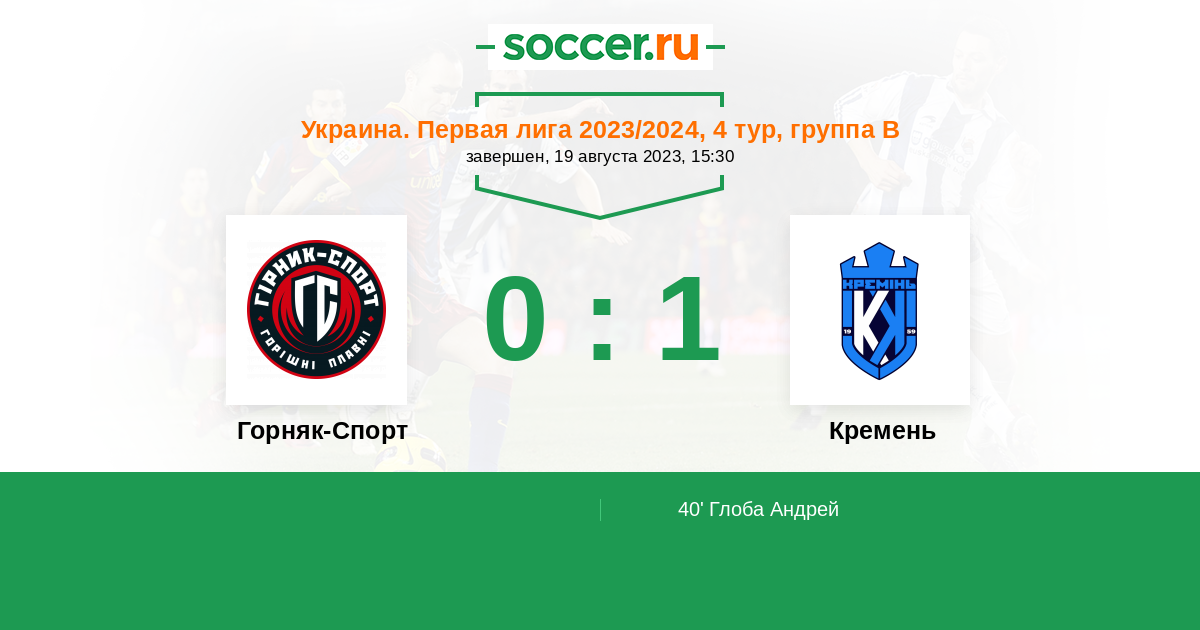 40' (0:1) Глоба Андрей