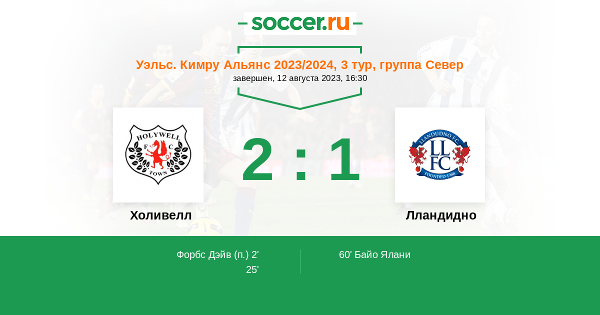 Форбс Дэйв 1:0(П) 2’