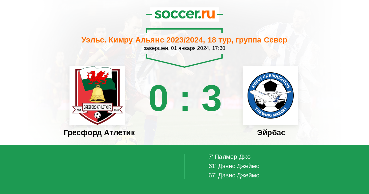 67' (0:3) Дэвис Джеймс