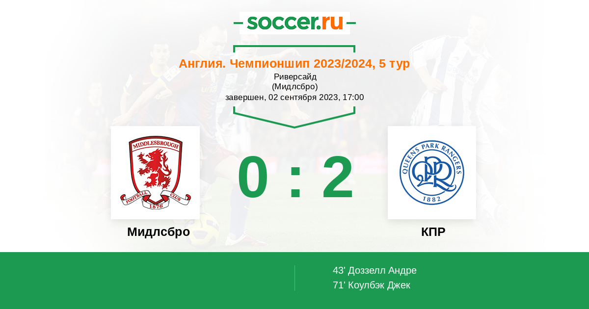 43' (0:1) Доззелл Андре (17) (Коулбэк Джек (4))