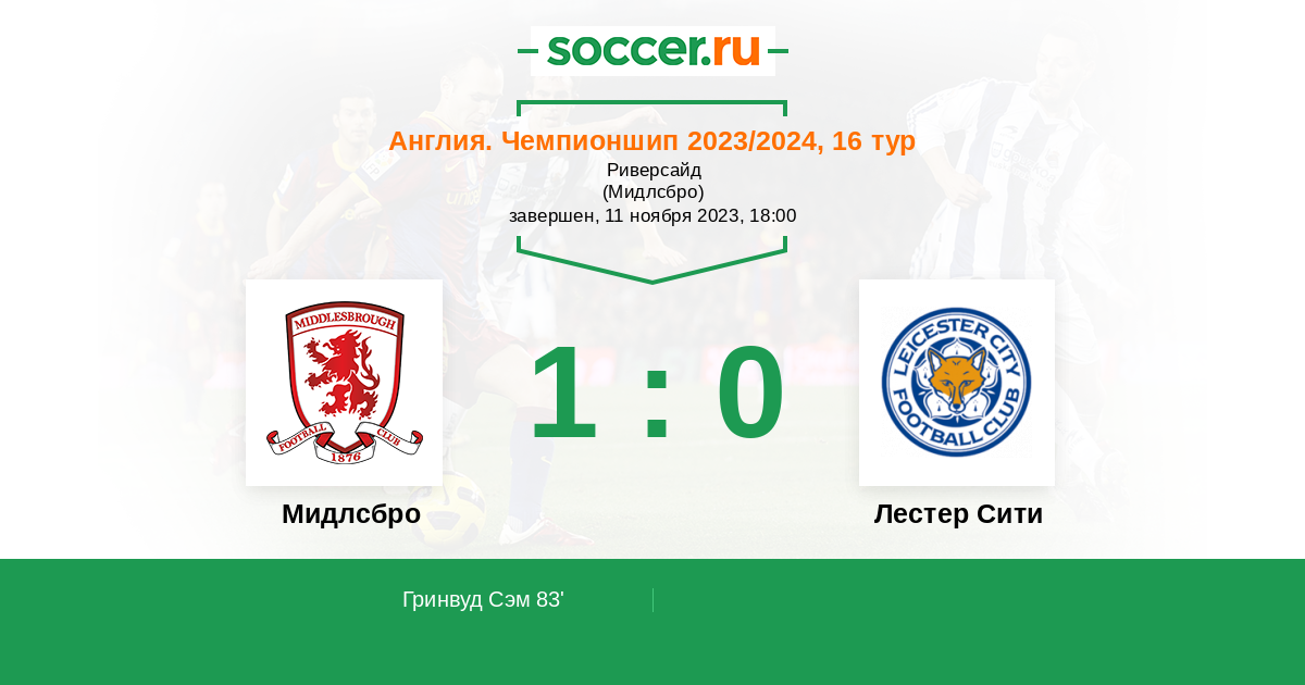 83' (1:0) Гринвуд Сэм (29)