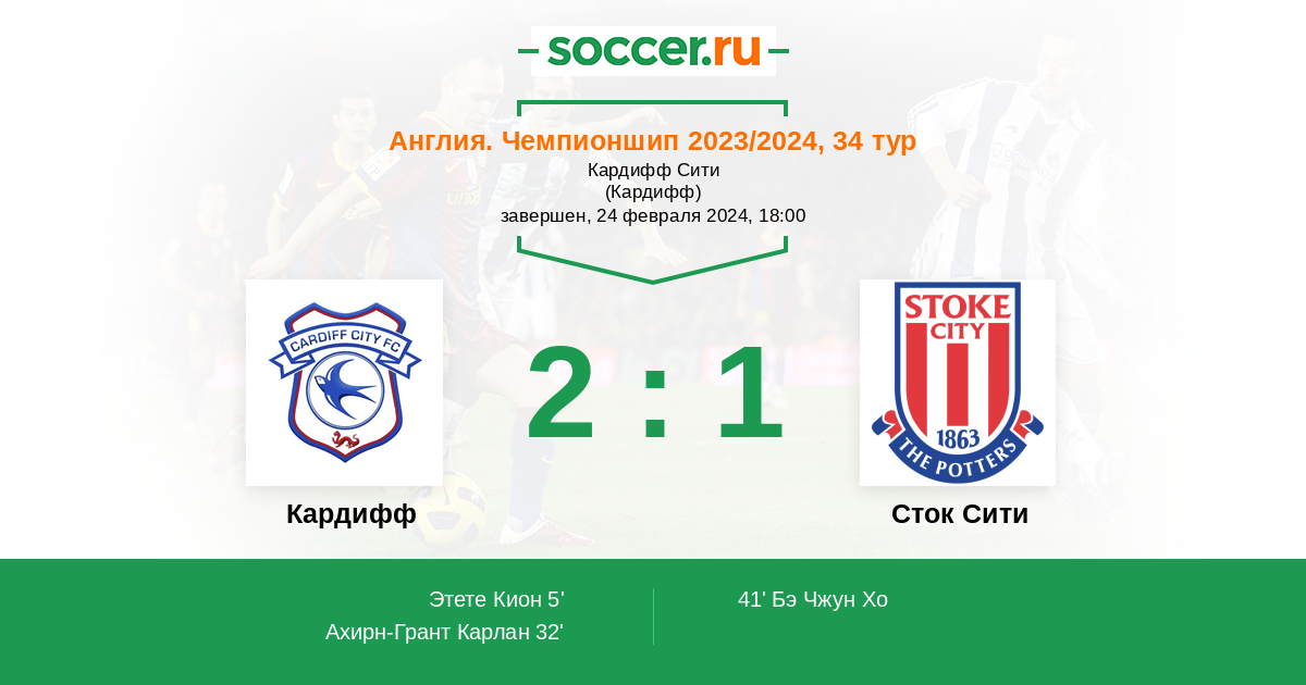 32' (2:0) Ахирн-Грант Карлан (16) (Роллс Джо (8))
