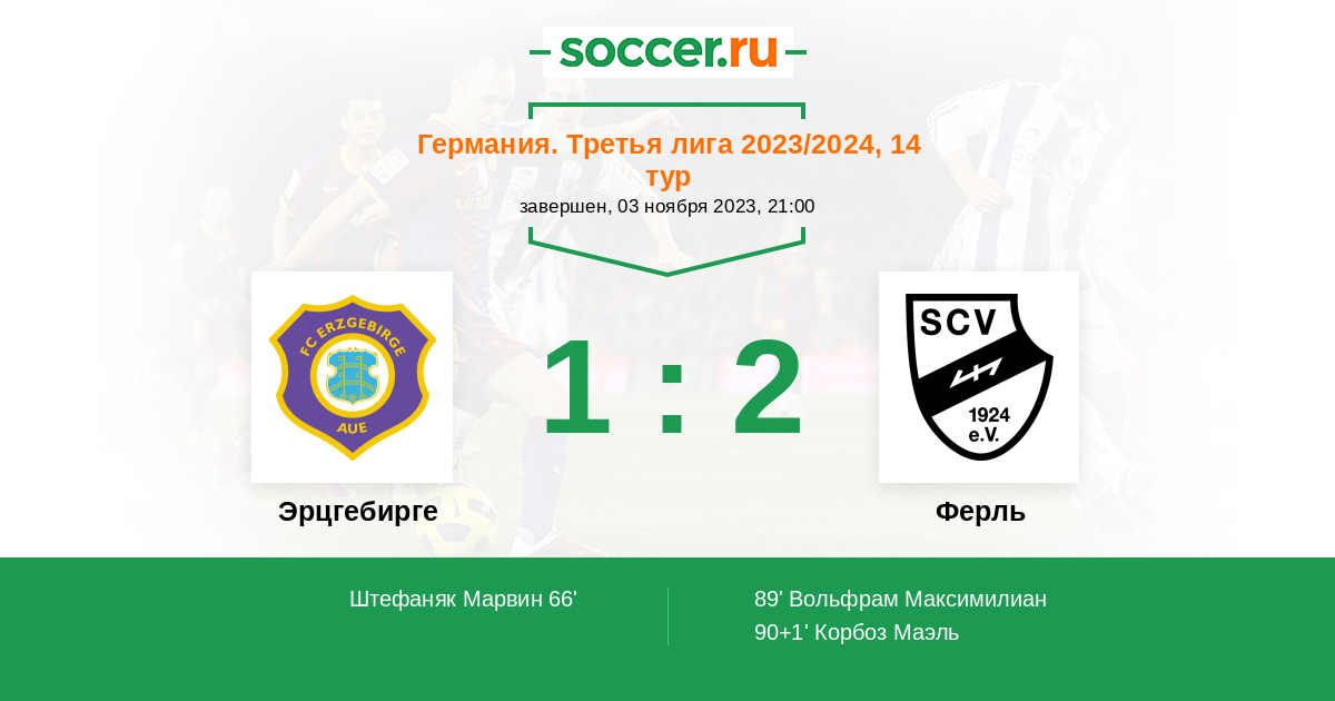 89' (1:1) Вольфрам Максимилиан (7) (Майер Оливер (17))