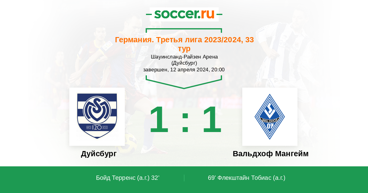 69' (1:1) Автогол Флекштайн Тобиас (15)