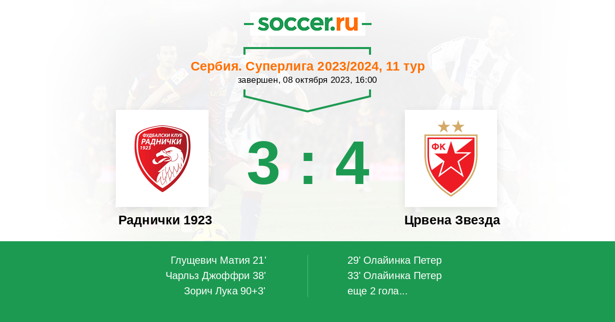 21' (1:0) Глущевич Матия (7) (Ристич Милош (27))