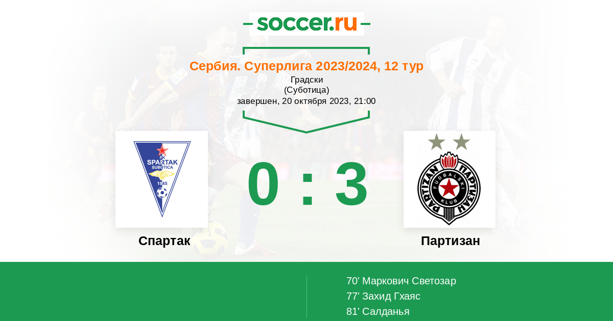 Гол70' (0:1) Маркович Светозар (6) (Николич Неманья (23))
