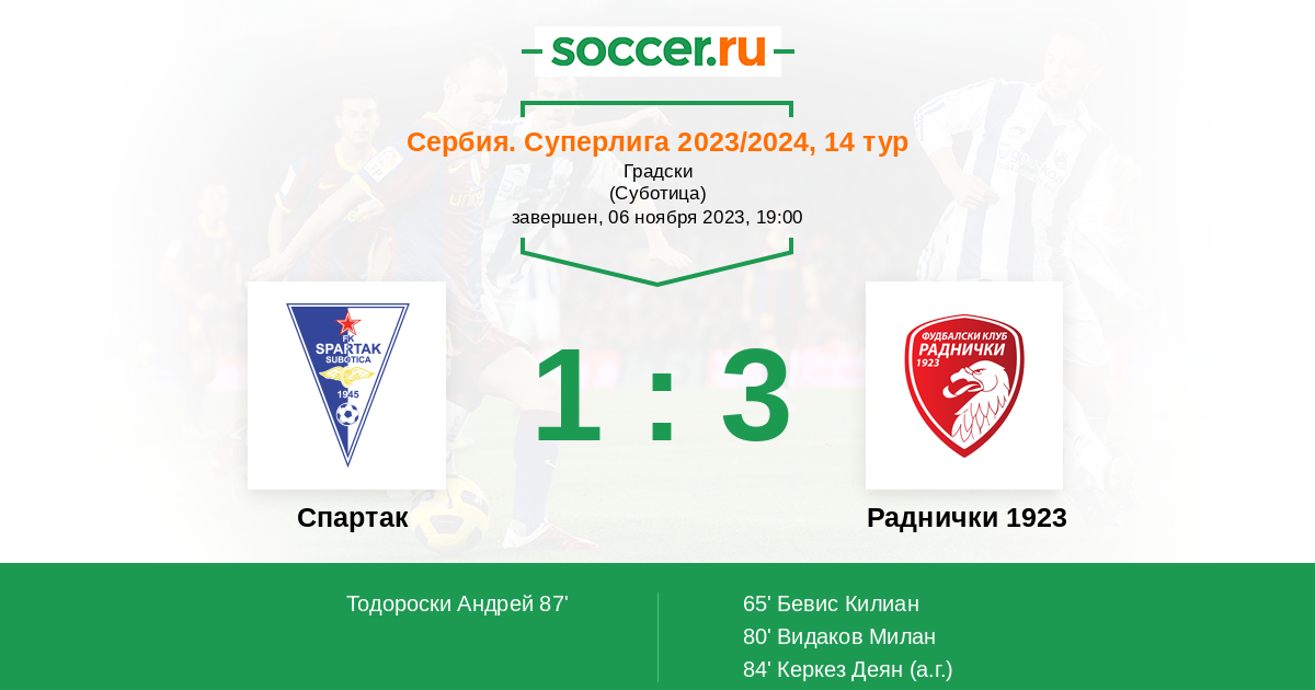 80' (0:2) Видаков Милан (90) (Бевис Килиан (93))