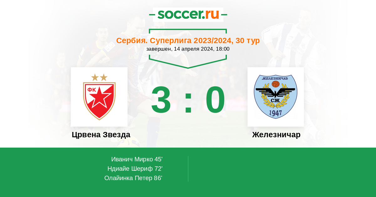 86' (3:0) Олайинка Петер (14) (Шливич Йован (7))