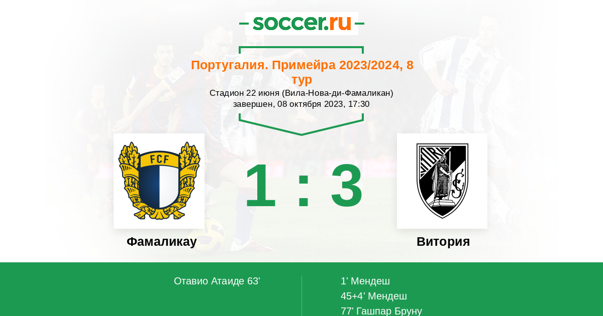 45+4' (0:2) Мендеш (17) (Жота Силва (11))