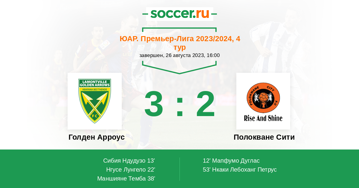 53' (3:2) Нкаки Лебоханг Петрус (34) (Апполлис Освин (11))