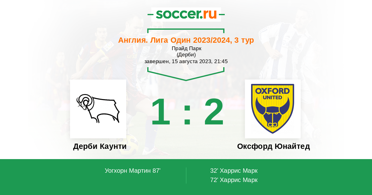 32' (0:1) Харрис Марк (9) (Браннаган Кэмерон (8))