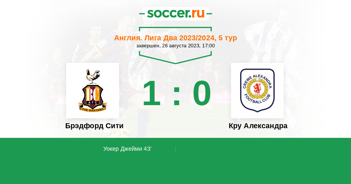 43' (1:0) Уокер Джейми (7) (МакДональд Кевин (26))