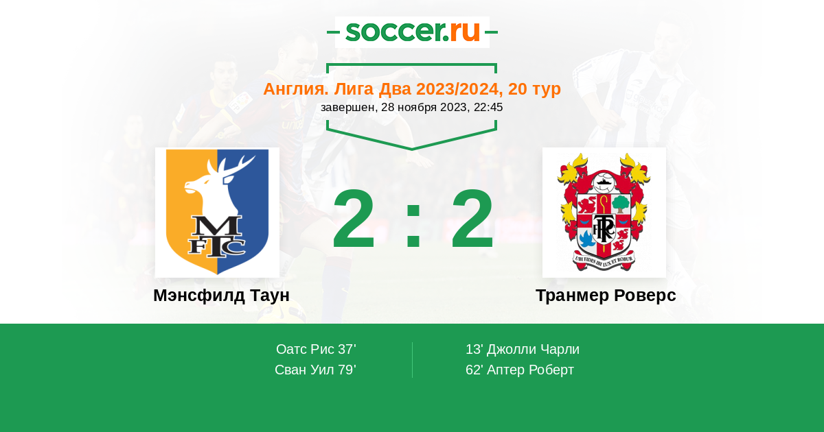 37' (1:1) Оатс Рис (18) (Кейллор-Данн Дэвис (40))