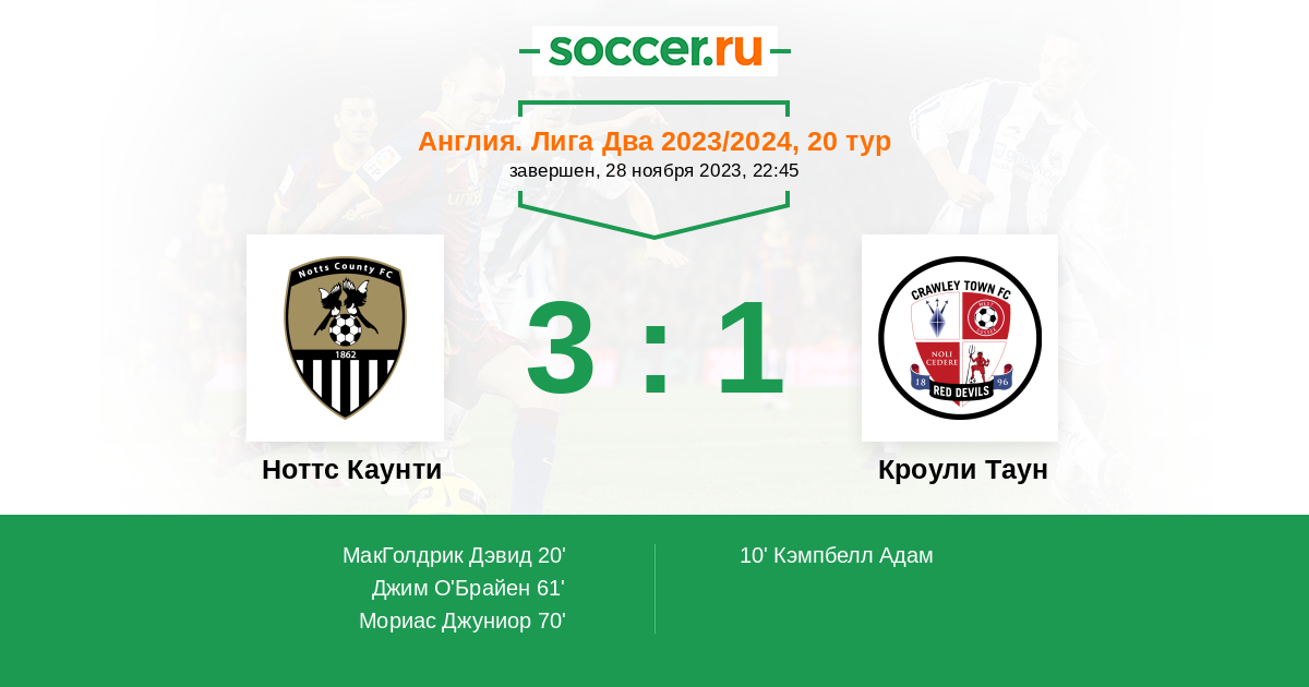 70' (3:1) Мориас Джуниор (27) (Кроули Даниэль (7))
