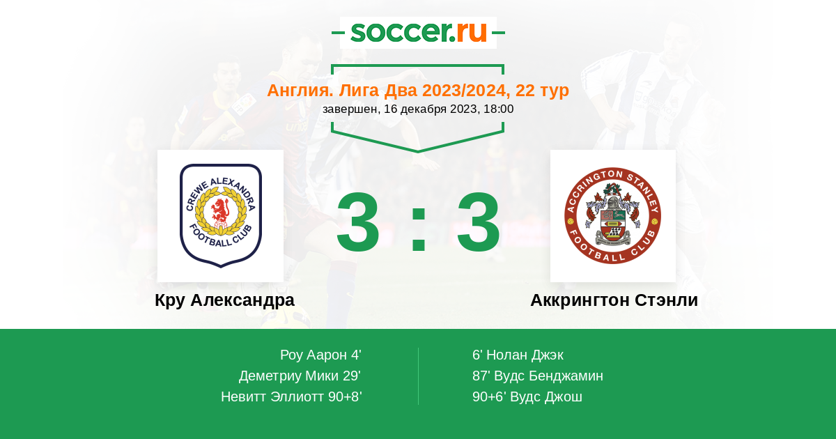 Гол90+8' (3:3) Невитт Эллиотт (20)