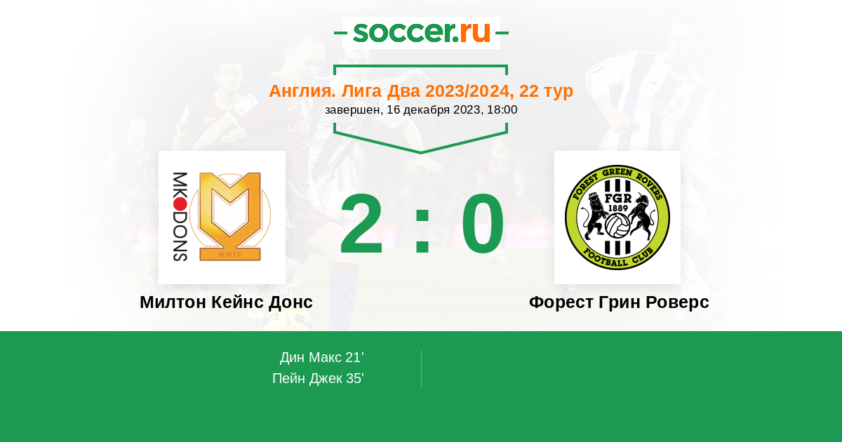 21' (1:0) Дин Макс (18) (Томлисон Джо (14))