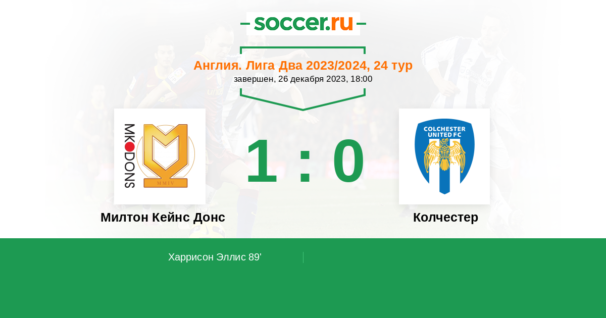89' (1:0) Харрисон Эллис (9) (Пейн Джек (11))