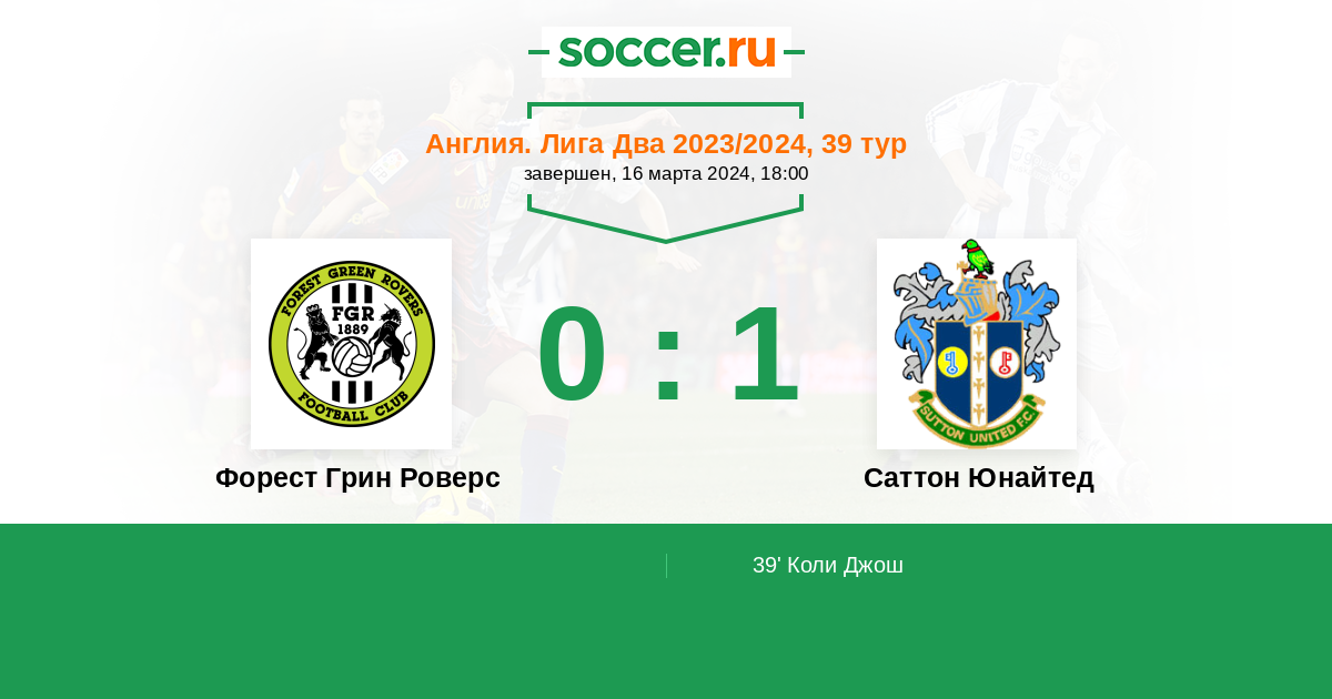 39' (0:1) Коли Джош (7) (Лэйкин Чарли (31))