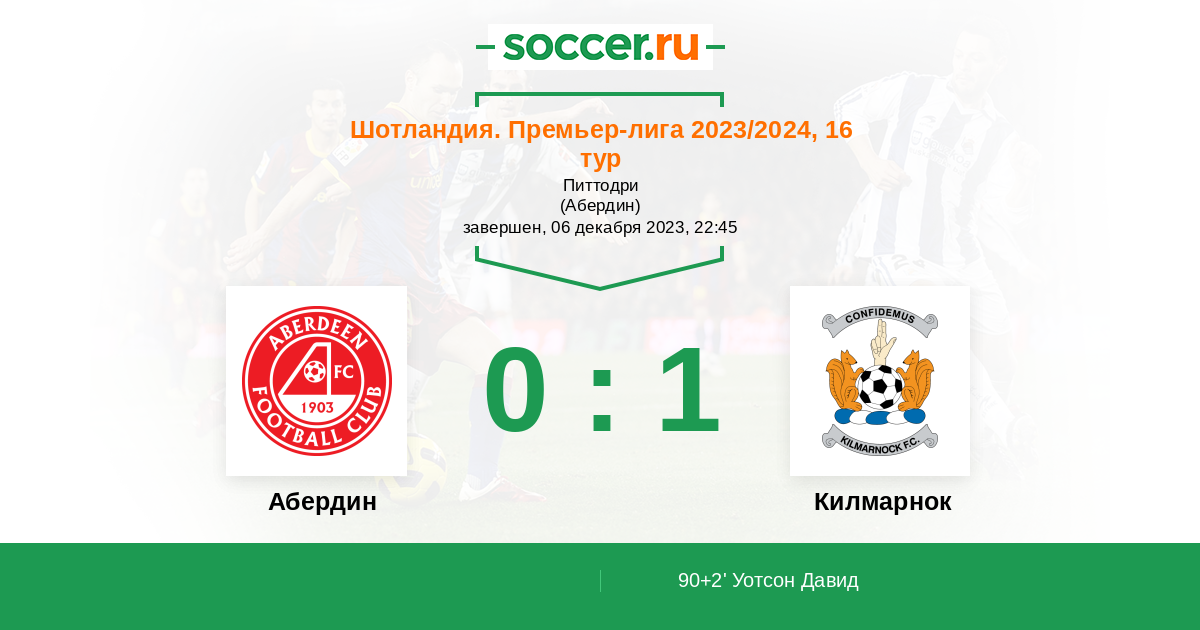 90+2' (0:1) Уотсон Давид (12) (Кеннеди Мэттью (10))