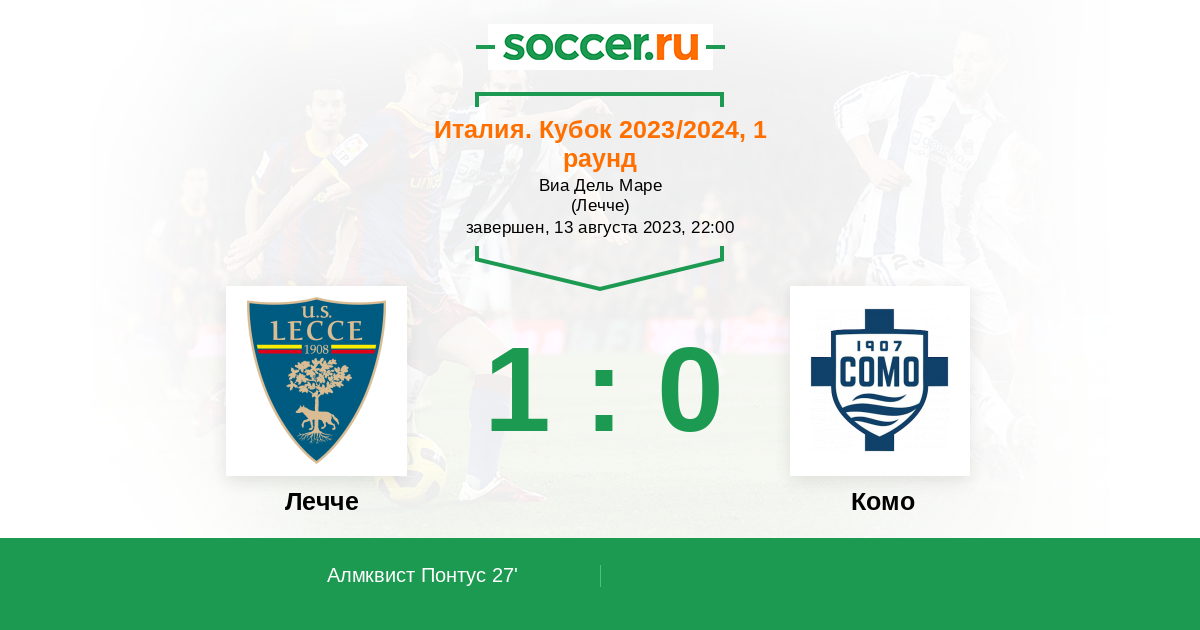 27' (1:0) Алмквист Понтус (7) (Доргу Патрик (13))
