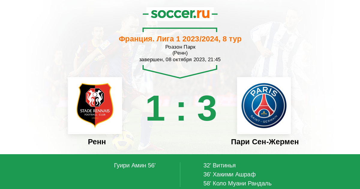32' (0:1) Витинья (17) (Дембеле Усман (10))