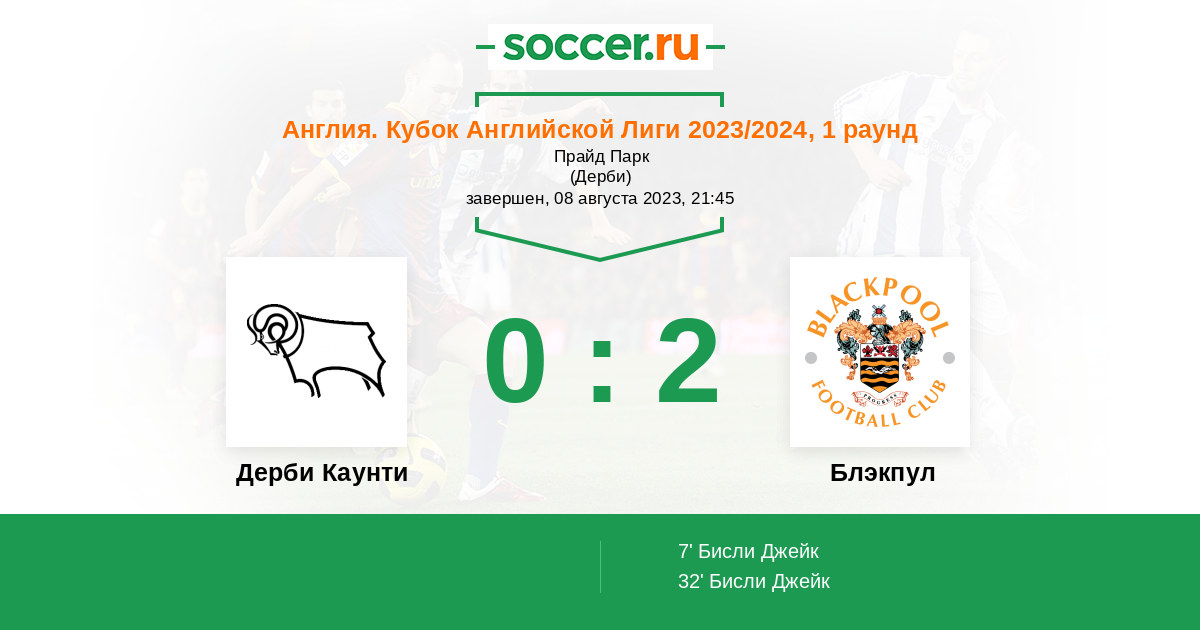 32' (0:2) Бисли Джейк (18)