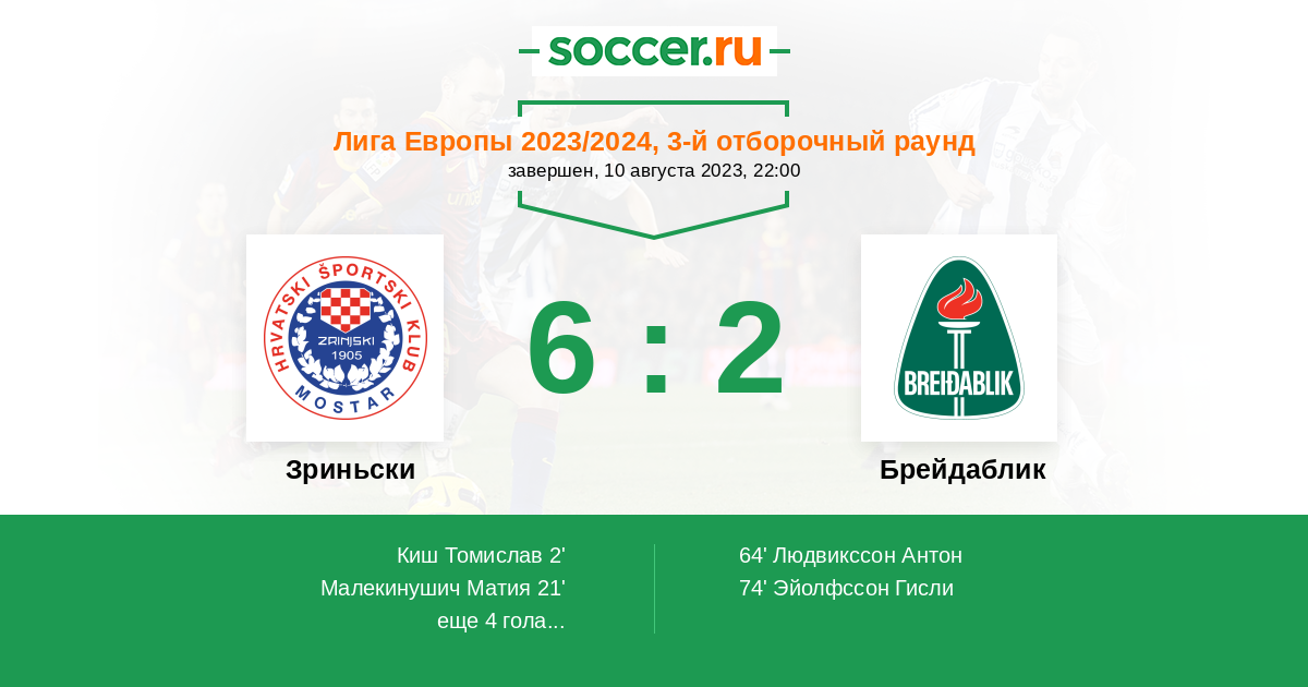 Зриньски - Брейдаблик ! Хозяева естественно выглядят фаворитами и будут стремится поскорее всё решить в свою пользу , но исландцы на удивление хорошо играют в гостях . Так , что предположу ТБ .