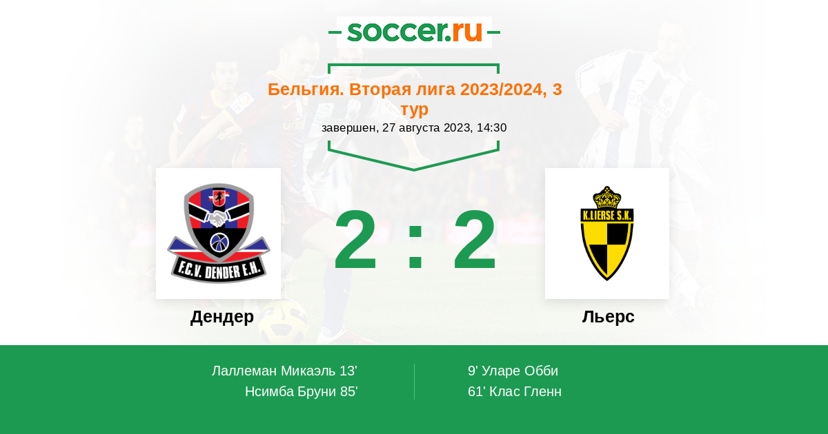 85' (2:2) Нсимба Бруни (77) (Хенс Леннар (10))