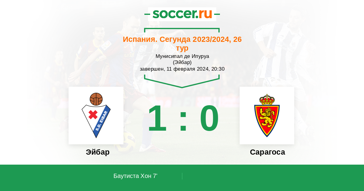 7' (1:0) Баутиста Хон (18) (Техеро Альваро (15))