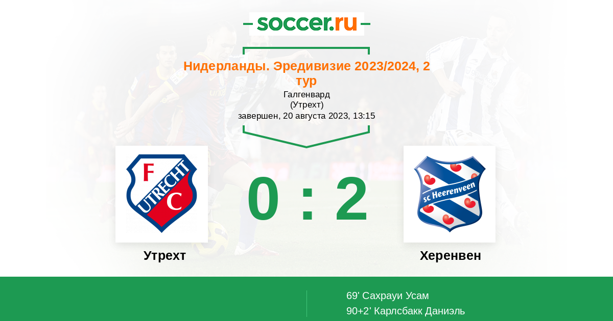 90+2' (0:2) Карлсбакк Даниэль (9) (Виттевен Мелле (38))