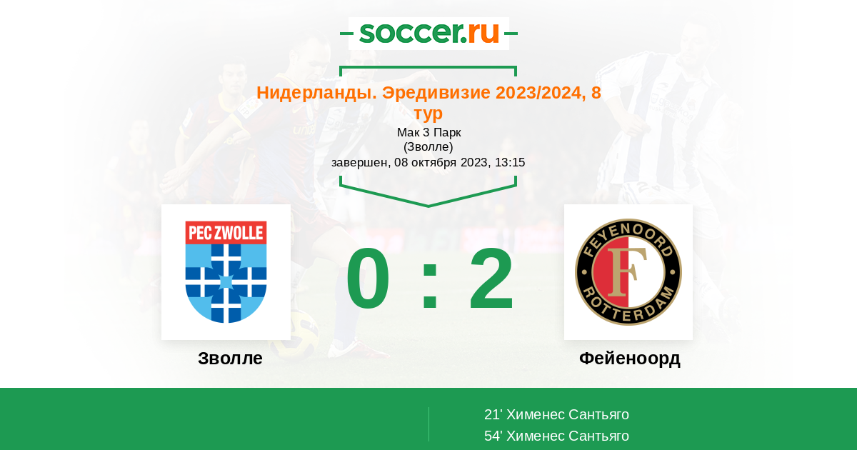 В предстоящем матче 8 - го тура в нидерландского Эредивизии между командами Зволле и Фейеноорд Роттердам, более чем явным фаворитом на победу является команда гостей Фейеноорд Роттердам, так как они играют лучше.