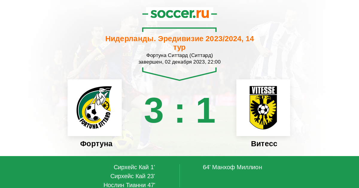 47' (3:0) Нослин Тианни (77) (Дейкс Митчелл (35))