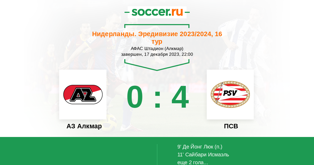 57' (0:4) Де Йонг Люк (9) (Сайбари Исмаэль (34))