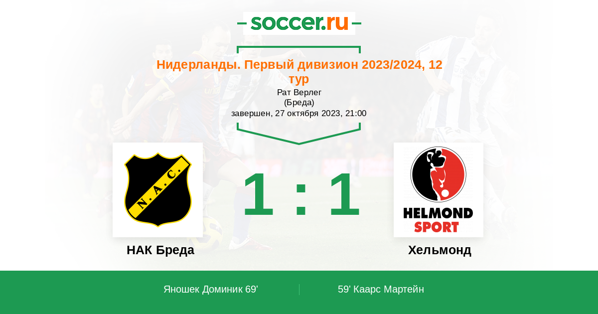 59' (0:1) Каарс Мартейн (9) (Ботос Яннис-Фивос (19))